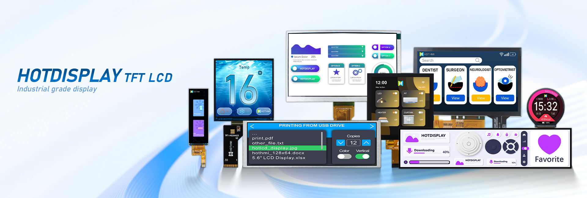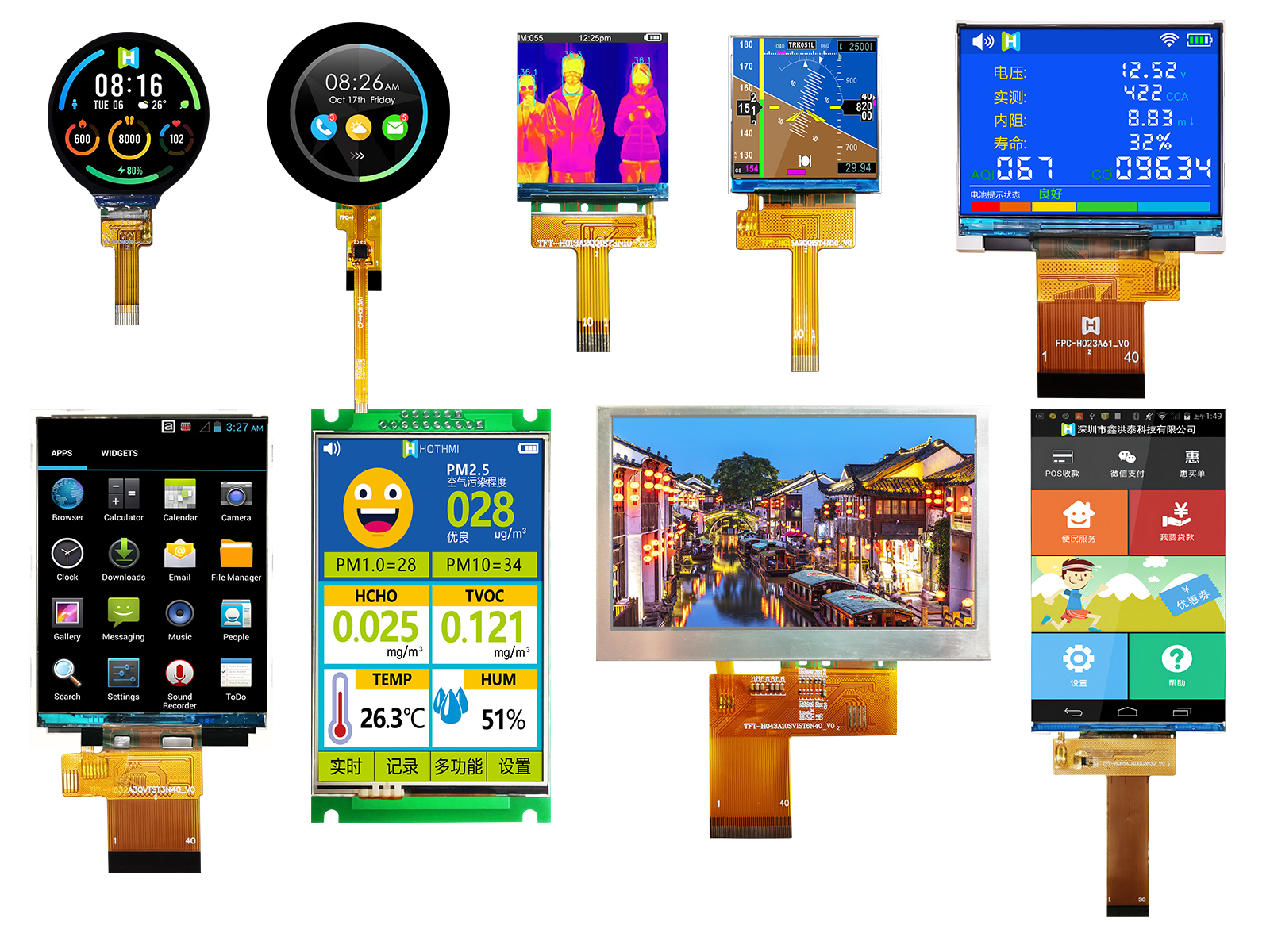 HOTLCD創(chuàng)立22年來(lái),已開(kāi)發(fā)出超過(guò)2000款標(biāo)準(zhǔn)和非標(biāo)準(zhǔn)液晶顯示屏及模組,廣泛應(yīng)用于人工智能、5G通訊、無(wú)人機(jī)、物聯(lián)網(wǎng)、車聯(lián)網(wǎng)、智能家居、智能穿戴、智慧交通、儀器儀表、醫(yī)療設(shè)備、工控設(shè)備、電力設(shè)備、勘探設(shè)備、航空航天、軍事裝備等諸多先進(jìn)領(lǐng)域。
